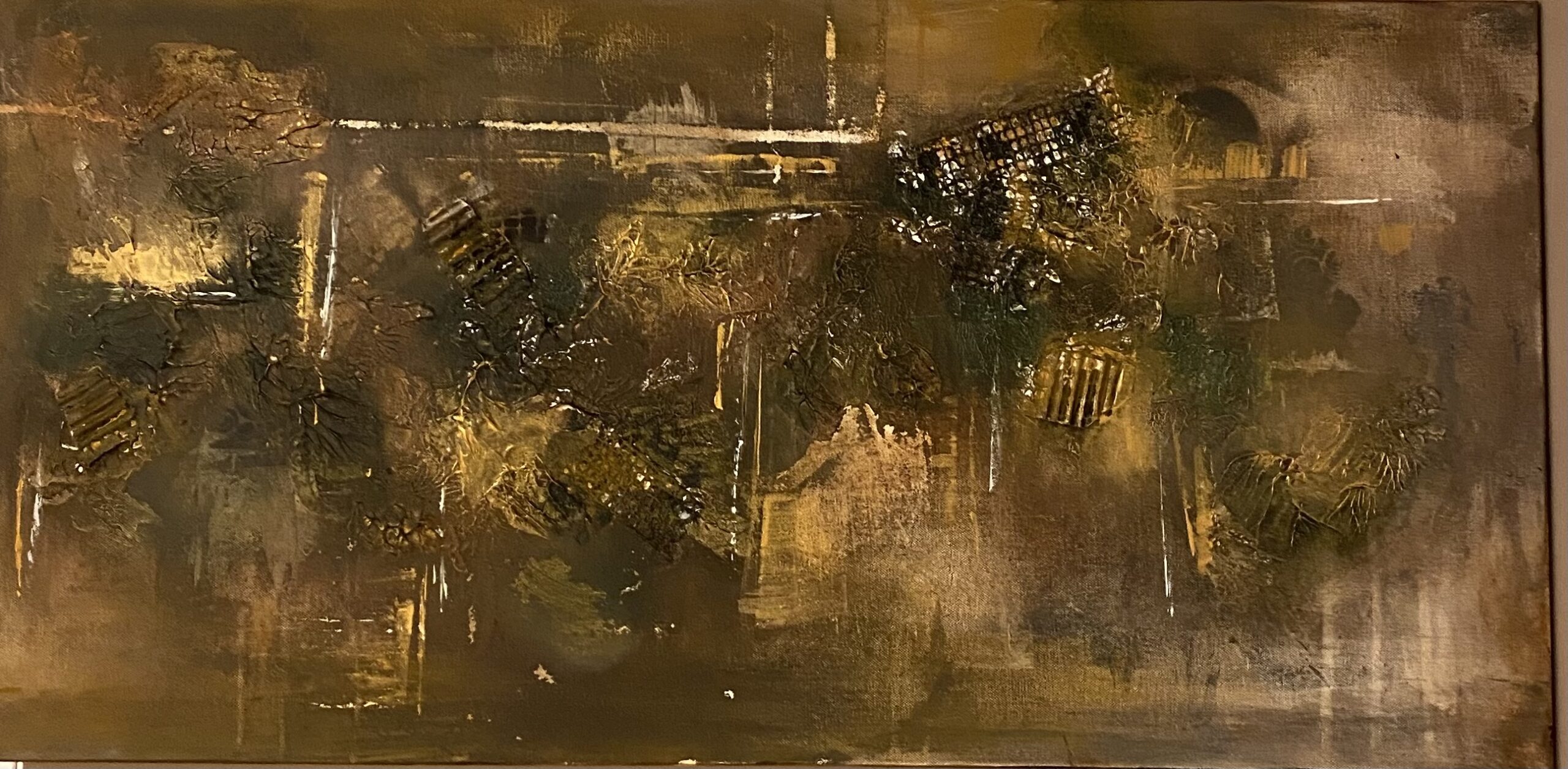 «Gylden strømning», akryl på deep edge lerret, 50×100 cm, SOLGT