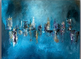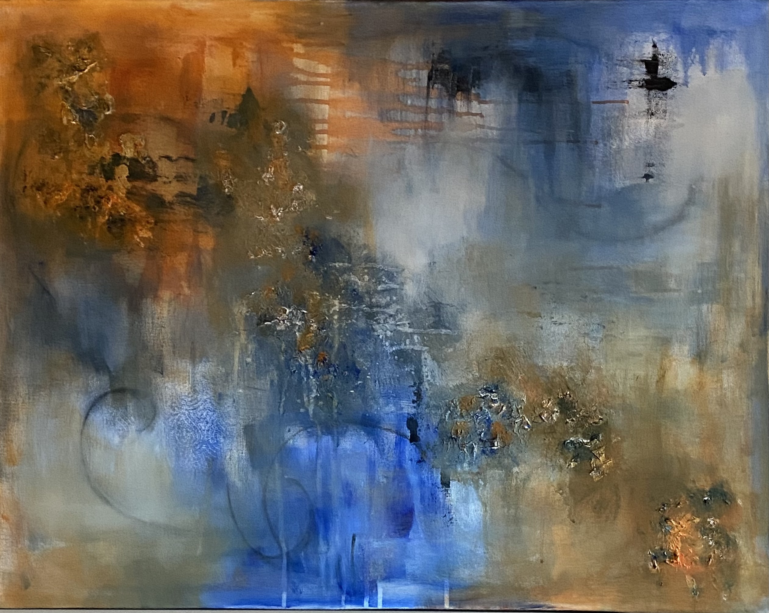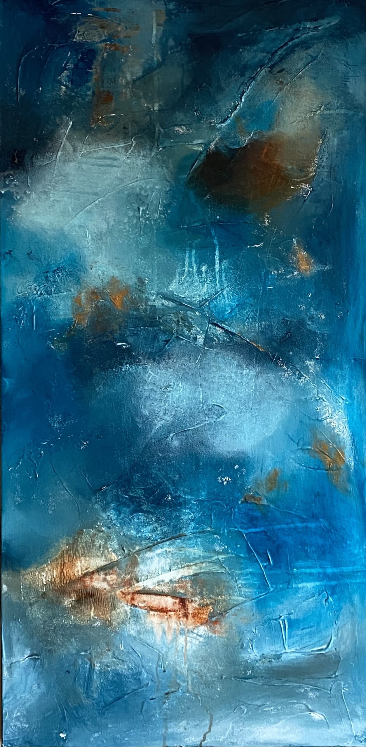 «Blå ild», akryl på deep edge lerret, 70×90 cm, kr 2100