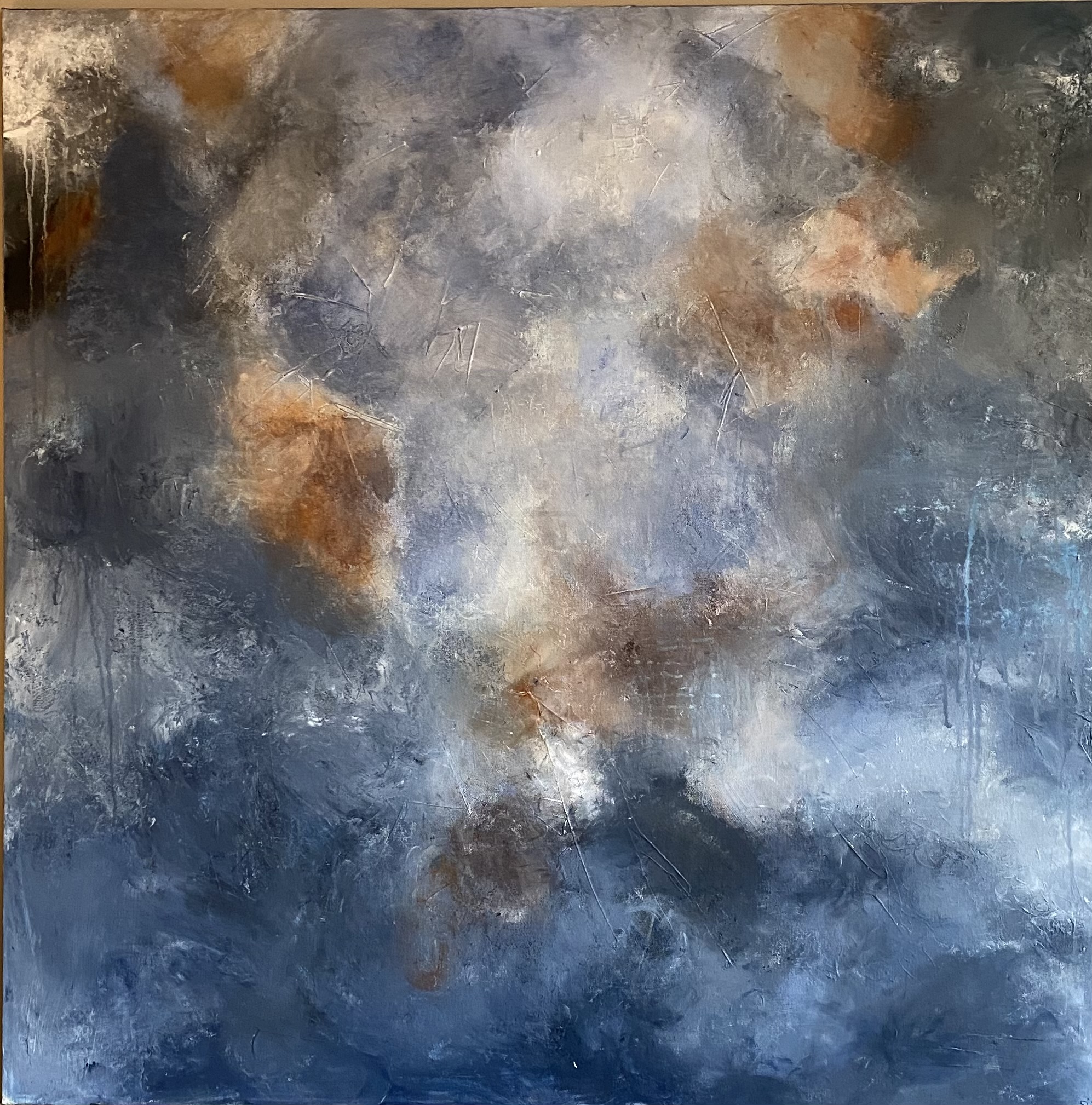 «Etterglød», akryl på deep edge lerret, 80 x 80 cm, kr 2100