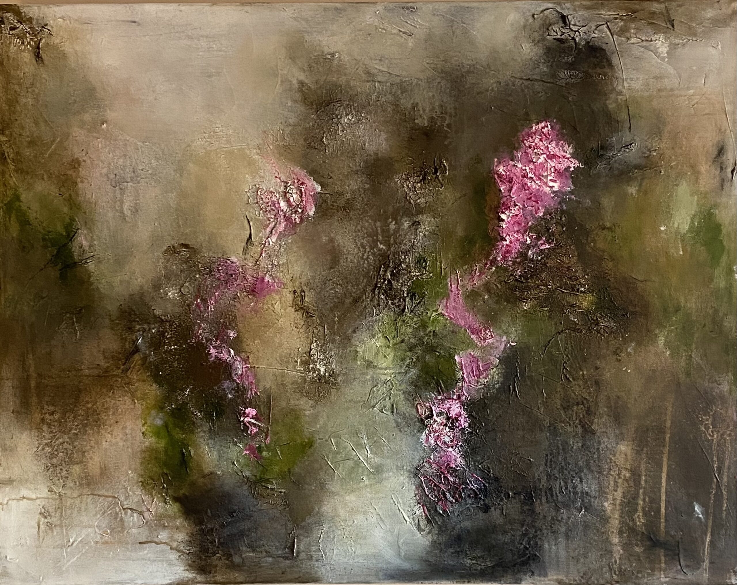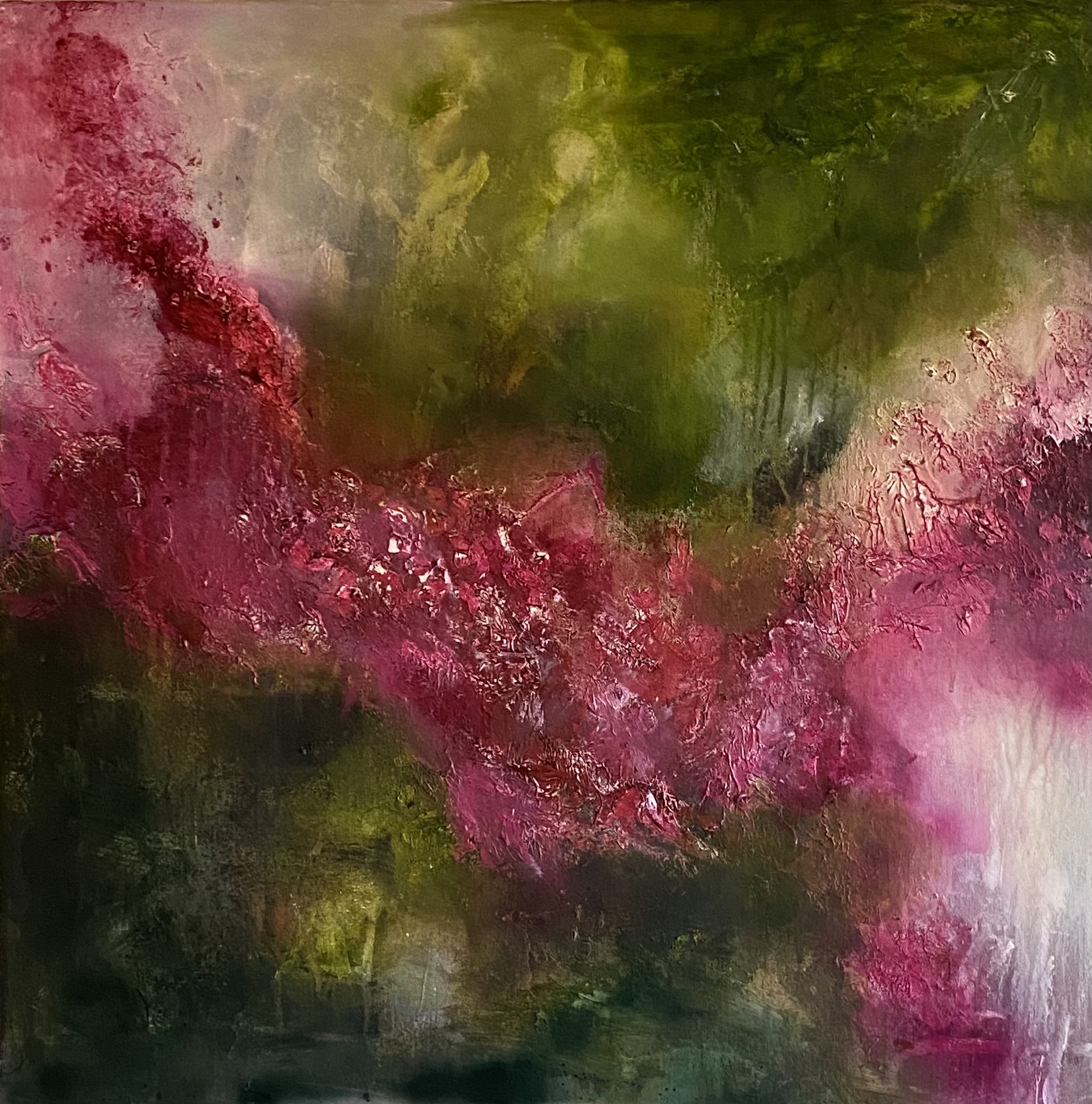 «Rosa stillhet», akryl på deep edge lerret, 80×80 cm, kr 2100