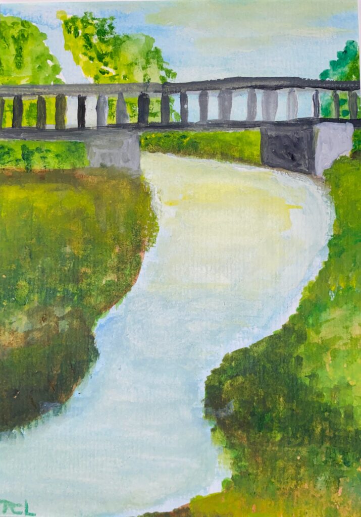 «Gjennom landskapet» Akvarell. 24 x 18 cm m/ valnøtt ramme m/passepartout. Kr. 350,-