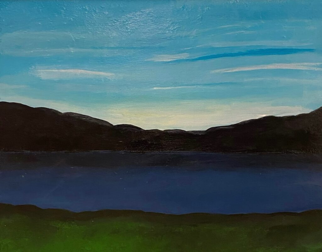 «Lake View» Akryl, 33 x 41 cm m/ valnøtt ramme. Kr. 900,-