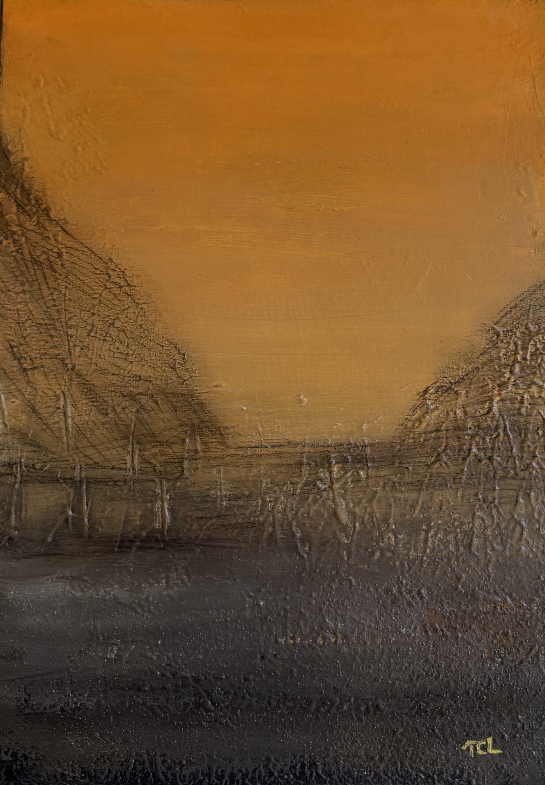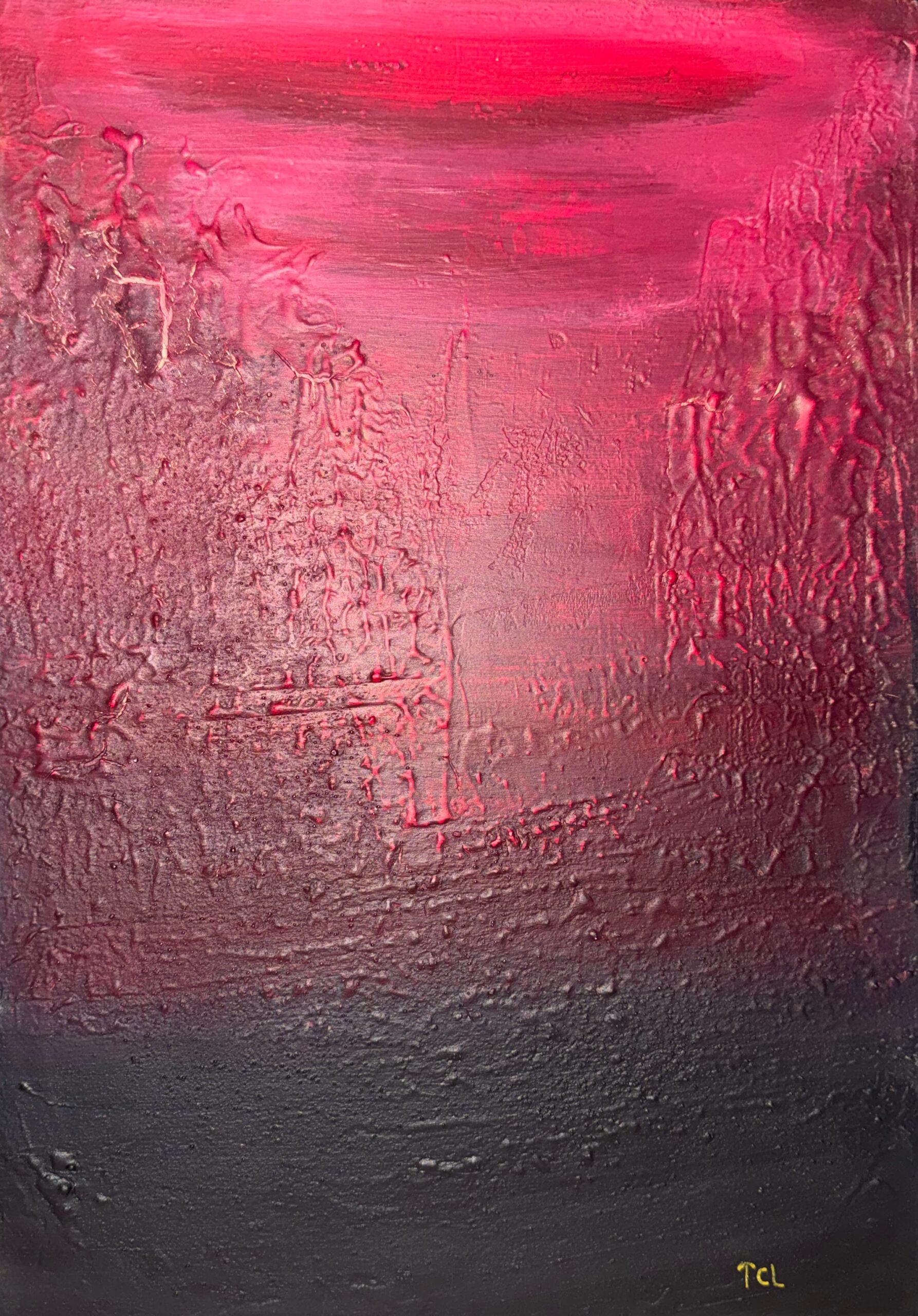 «Glødfallet» Akryl og mixed media. 21 x 29,7 cm.