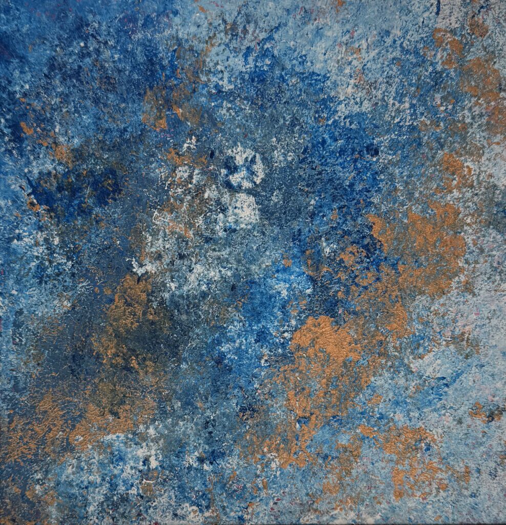 «Under overflaten» Akryl og mixed media. 21 x 30 cm m/ ramme. Kr. 450,-